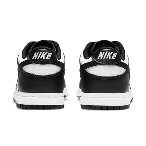 The sleek black leather overlays on the forefoot, eyelets, collar, and heel create a stunning contrast against the fresh white leather base. You’ll love the chic black leather Swoosh on each side, complemented by the classy white “Nike” embroidery on the back of the shoe. The Nike Dunk Low PS “Black/White” offers a delightful, clean, and understated look for little ones who want to rock the popular low-top style.